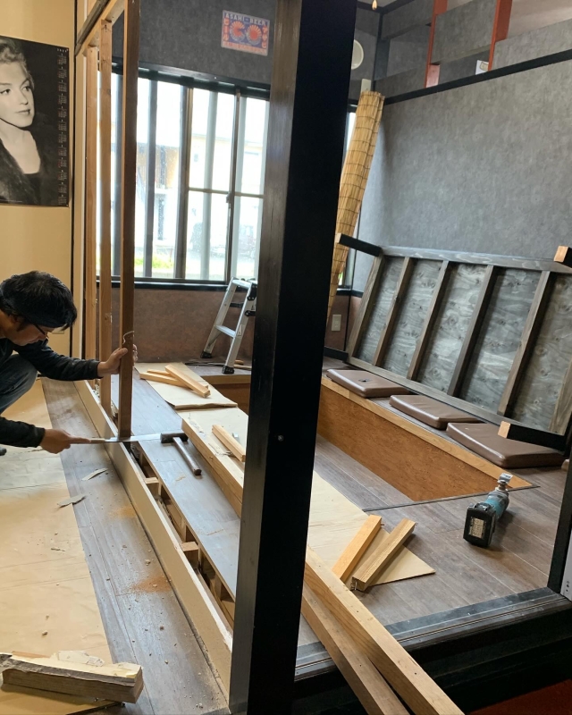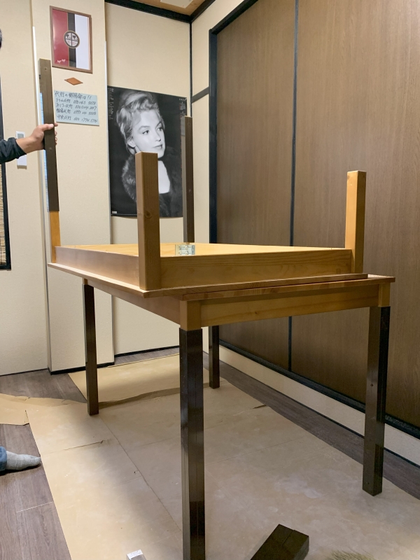 ②テーブルの高さも調整できるよう取り外し可能な脚へ改修