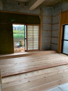 (畳部屋からカフェ板を使用し、フローリングへ)