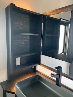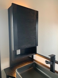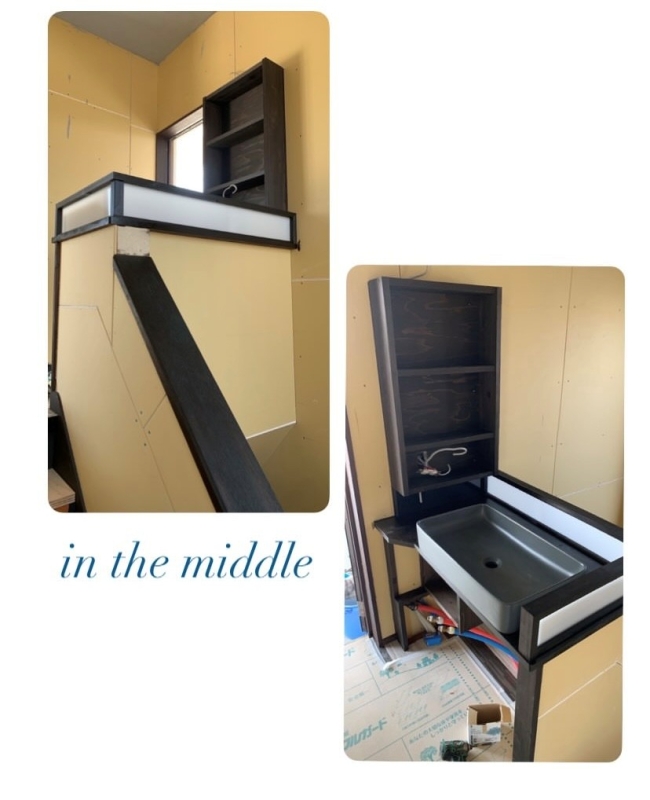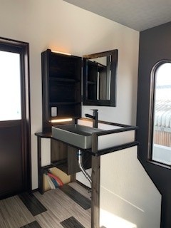 新たに洗面台・洗面ボウル・棚(鏡付き棚・下段収納棚)を製作